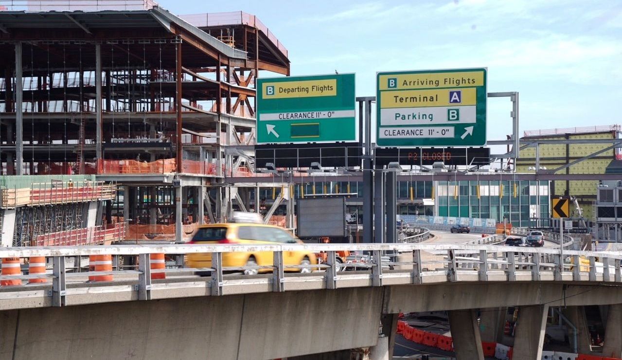 Mientras continúa la construcción, el 10 de agosto se estableció un nuevo patrón de tráfico para ingresar al aeropuerto desde las salidas 6 y 7 hacia el oeste de Grand Central Parkway.