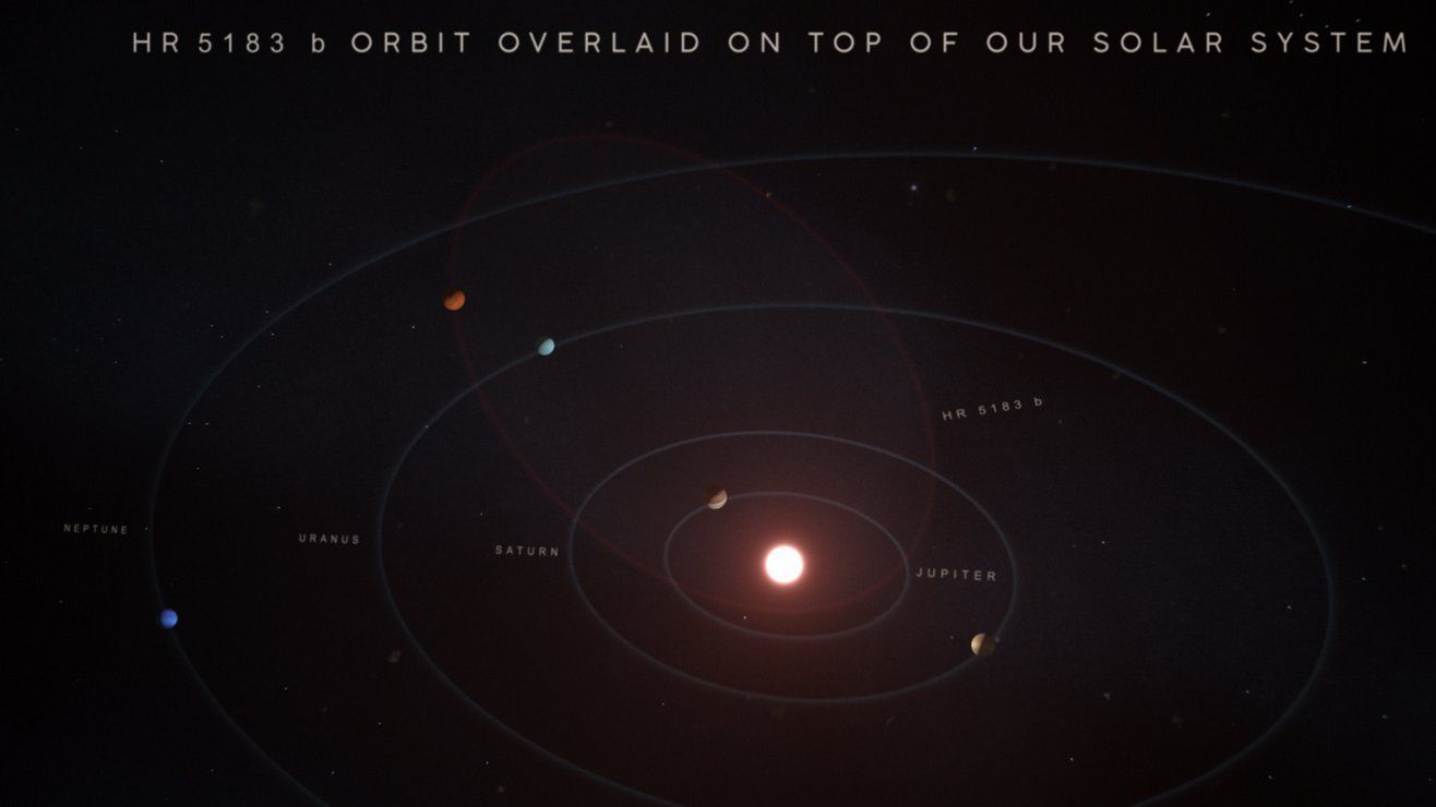 Los astrónomos han estado observando la estrella del planeta, llamada HR 5183, desde la década de 1990, pero no tienen datos correspondientes a una órbita completa del planeta, llamado HR 5183 b, porque rodea su estrella aproximadamente cada 45 a 100 años. En cambio, el equipo encontró el planeta debido a su extraña órbita.