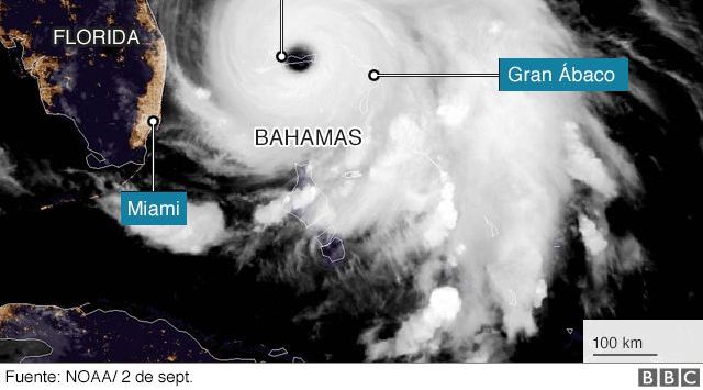 El ojo del huracán Dorian afectó de lleno a la isla de Gran Bahama. Crédito: NOAA
