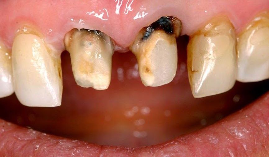 El color de los dientes puede oscurecerse o tornarse amarillo por factores diversos, como el tabaquismo, pero puede ser también consecuencia del avance de una caries que se ubica en la pulpa y destruye los tejidos, generando cambios en la pigmentación dental.