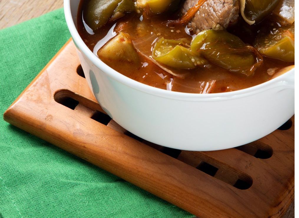 Este guiso es uno de los más deliciosos de la cocina mexicana, es una preparación sencilla que promueve el consumo de ingredientes locales como: los tomates verdes, cebollas, ajo, chiles, hierbas de olor, especies y carnes como la de res.