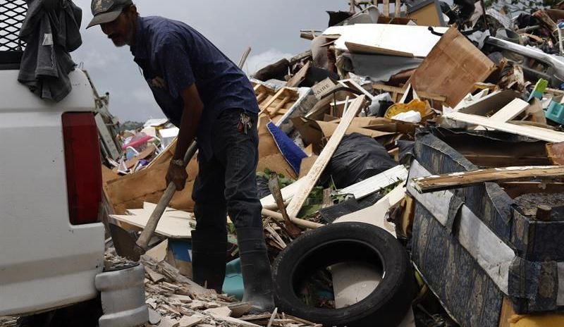 Un hombre recoge los restos de casas destruidas por el huracán María, el 16 de septiembre en el municipio de Yabucoa, en Puerto Rico. Crédito: Thais Lorca | Efe