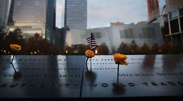 Flores adornan el monumento a las v'ictimas del 9/11 en Nueva York. Crédito: Archivo | Spencer Platt/Getty Images