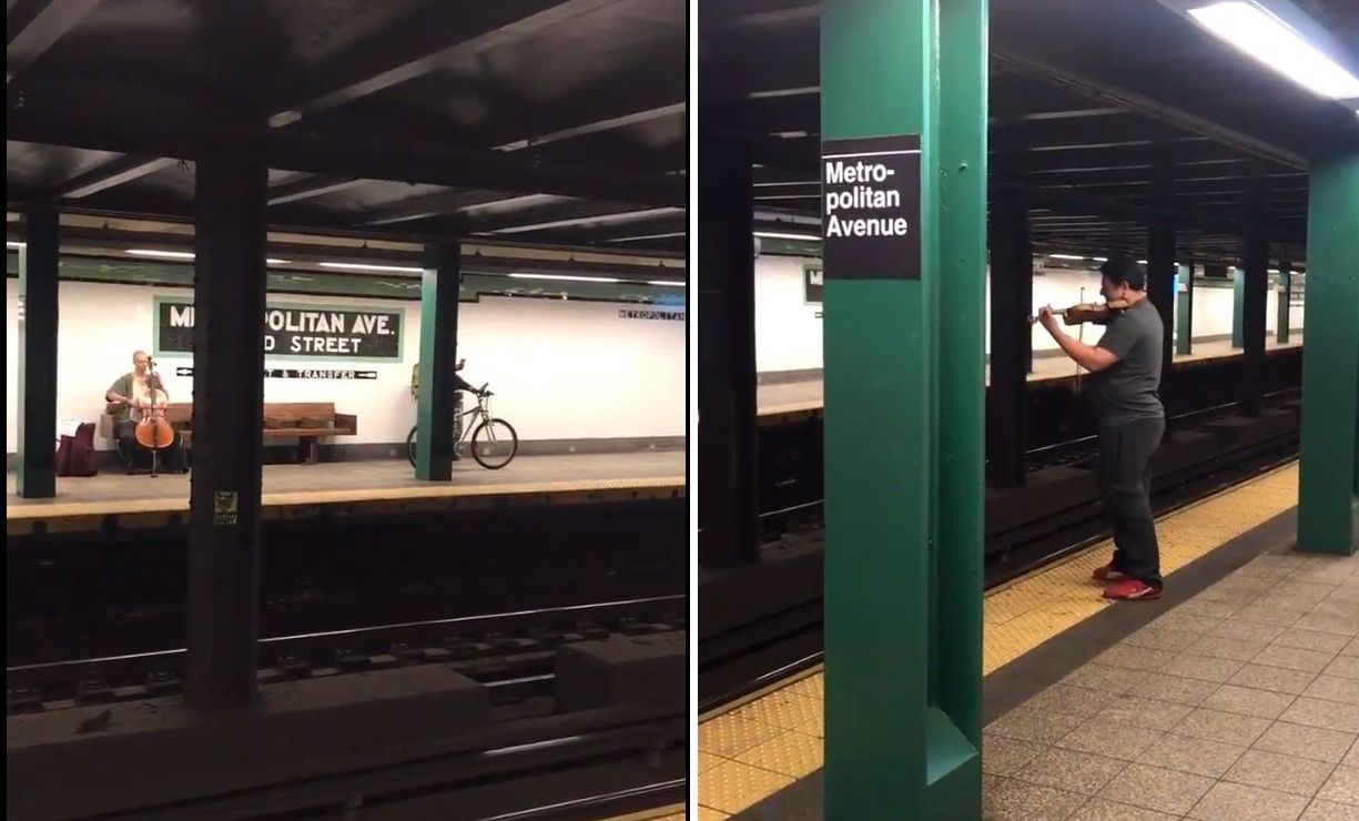 These two buskers are playing together from opposite sides of the G, fuck, ugh, my heart pic.twitter.com/12OrSkxQUG