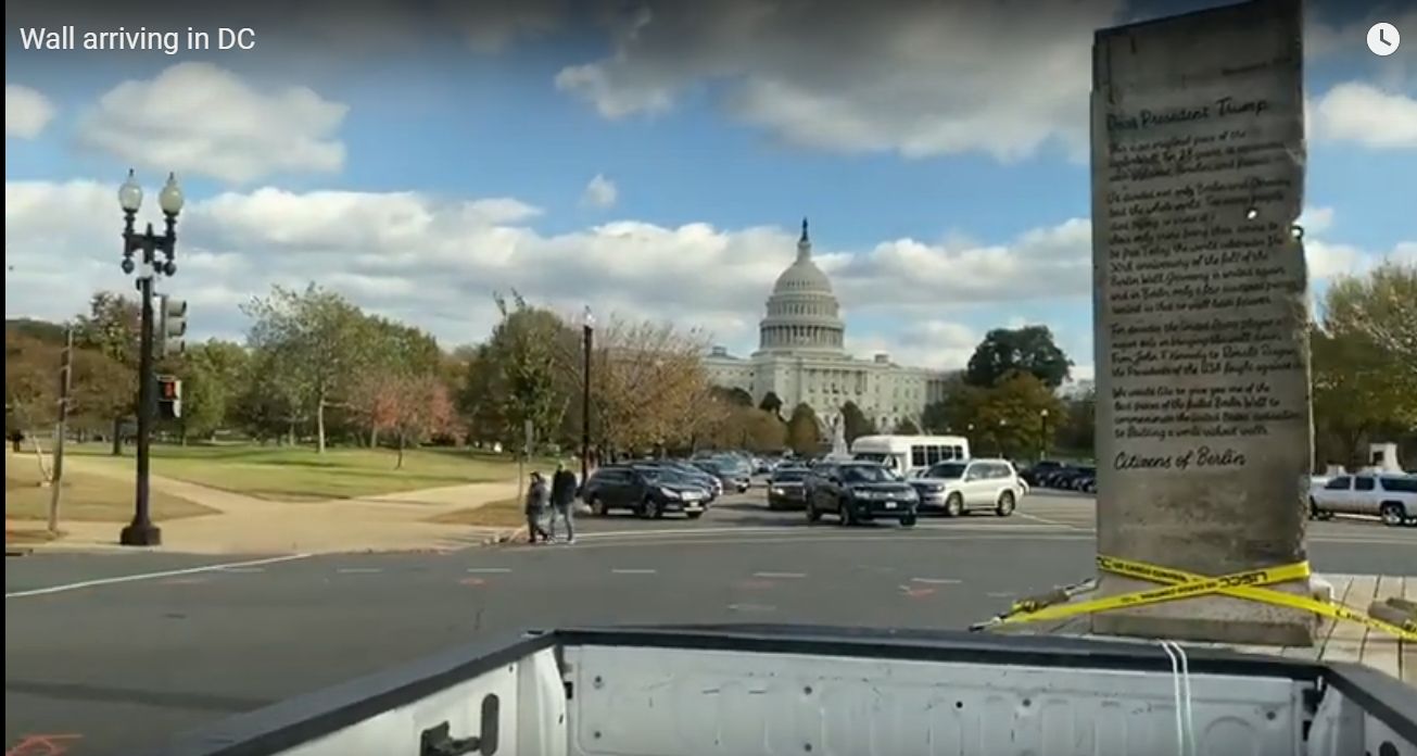 Un pedazo del Muro de Berlín dedicado a Trump llega a Washington DC. Crédito: Captura de pantalla YouTube/Justin Rohrlich