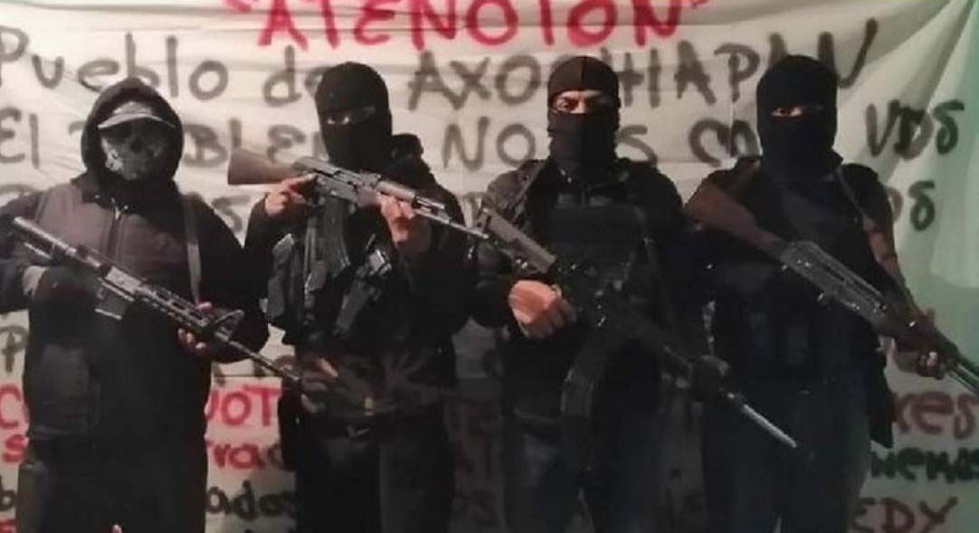 En la instantánea a la que hacen referencia varios medios mexicanos, se ve a cuatro sujetos encapuchados vestidos de negro con armas de alto calibre. De fondo, se aprecia la manta con la amenaza a los delincuentes como si los integrantes del CJNG no lo fueran.