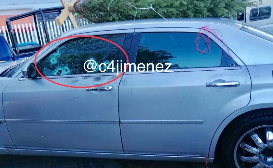 Una foto en Twitter que compartió el periodista Carlos Jiménez muestra el auto baleado aún con el árbol de Navidad en el techo.