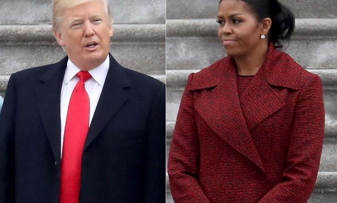 La ex primera dama Michelle Obama y Donald Trump. Crédito: Rob Carr/Getty Images