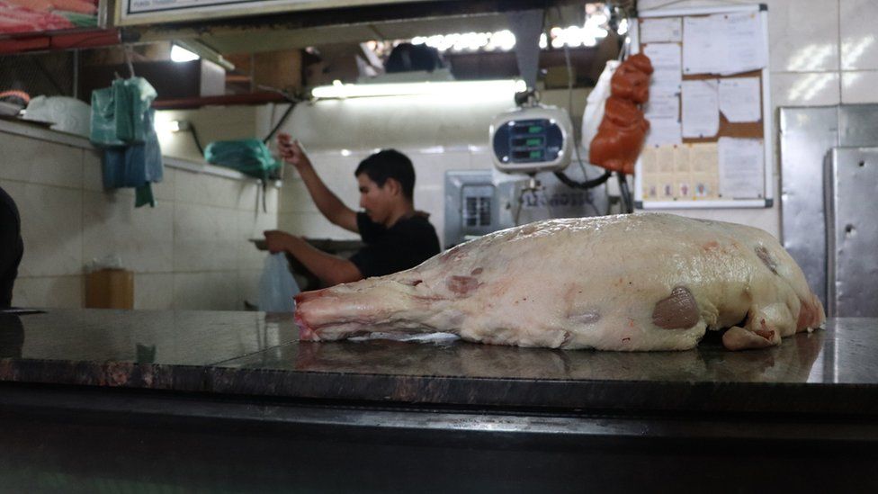 El precio de los perniles del gobierno ronda los 30.000 bolívares por kilo (menos de un dólar al cambio), pero en el mercado libre esa cantidad puede subir hasta los 250.000 (algo más de US$5,3), lo que está fuera del alcance de muchos aquí.