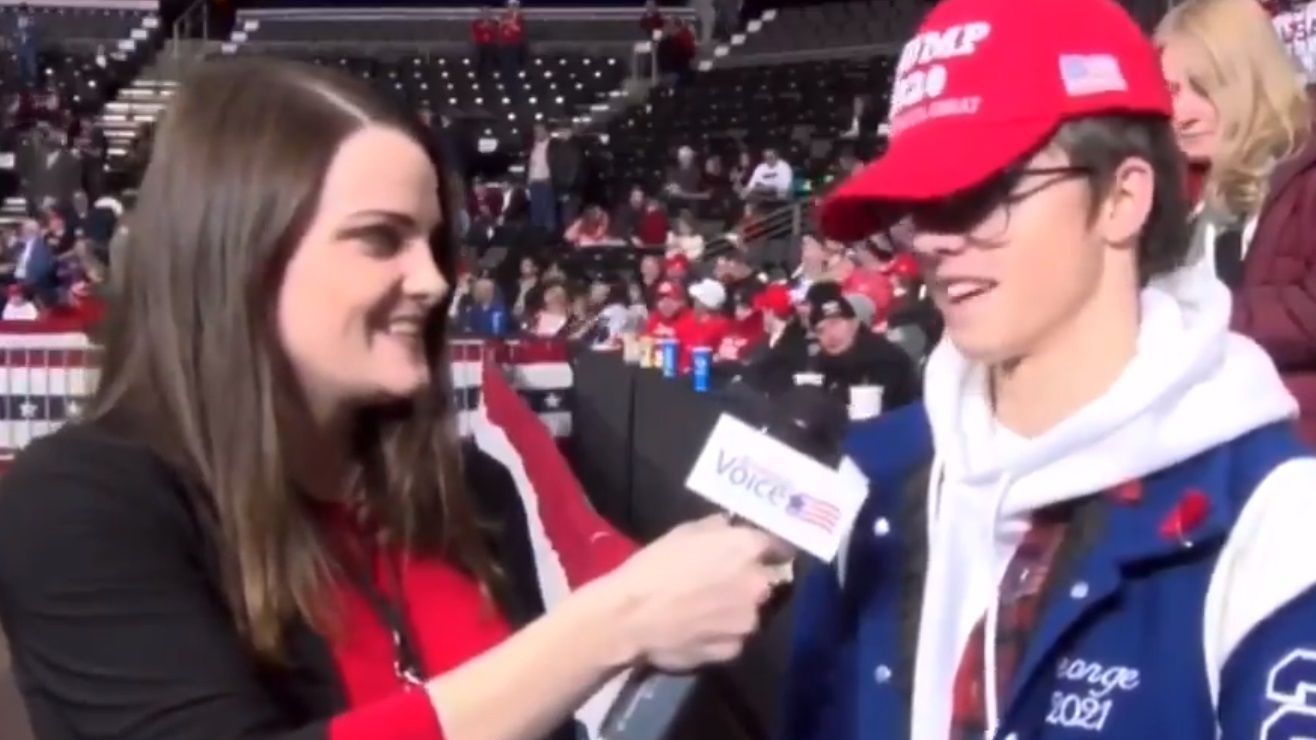 Un video publicado en Twitter muestra a un joven intentando responder la pregunta de una reportera durante un evento de campaña.