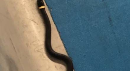 Un niño vio al reptil negro en el piso del puesto de control del aeropuerto de Newark, Crédito: TSA | Cortesía