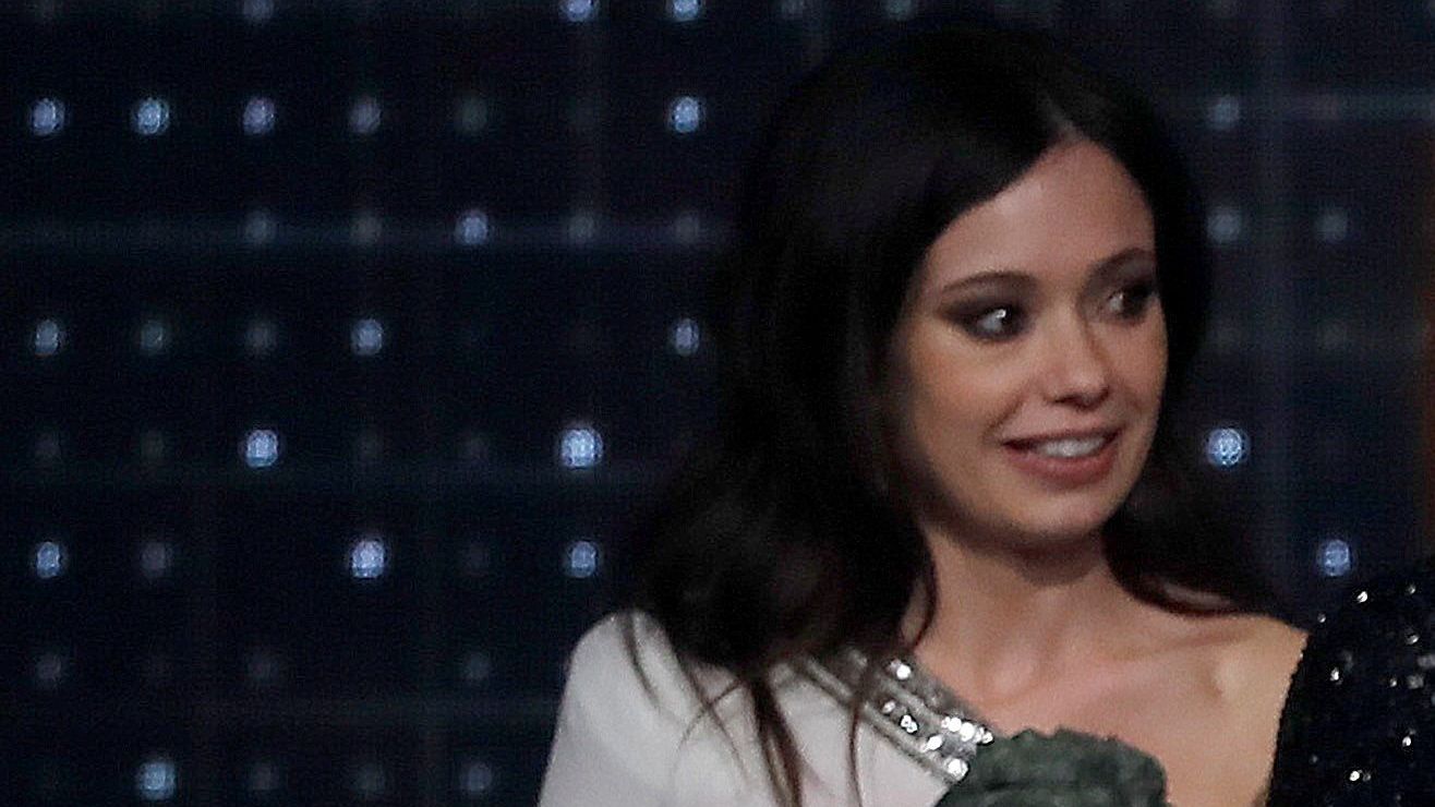 La actriz Benedicta Sánchez (d) recibe el Goya a la actriz revelación, por su trabajo en "O que Arde", en la entrega de los Premios Goya 2020 que se celebra hoy sábado en el Palacio de los Deportes José María Martín Carpena, en Málaga, Crédito: Chema Moya | EFE