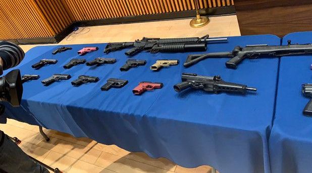 Las autoridades arrestaron a cinco hombres -tres residentes de NYC y dos del estado Georgia-, y confiscaron más de tres docenas de “pistolas callejeras” y rifles de asalto, incluido un AR-15 modificado para parecer que tiene un accesorio de lanza granadas.