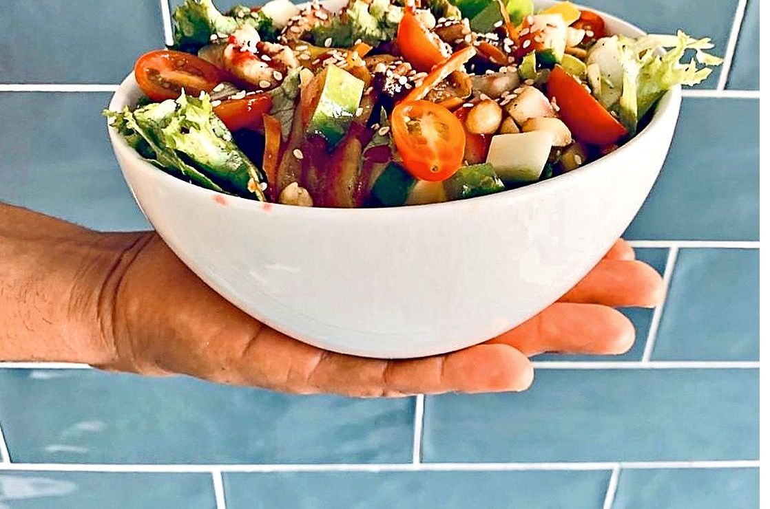 1. Ensalada de huevo, pechuga de pollo, aguacate y chía