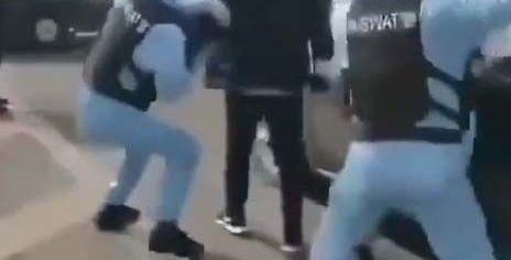 En el video, que comenzó a circular hace, aproximadamente, una semana, y del que circulan varias versiones, cuatro supuestos oficiales de la Unidad de Armas Especiales y Tácticas (SWAT) intervienen con un alegado enfermo quien se quita la mascarilla e intenta escapar del auto.
