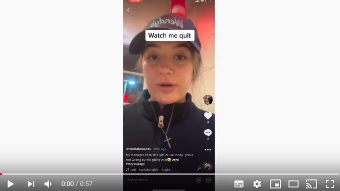 Una joven llamada Maria Kukulak se ha convertido en la gran sensación en Internet luego de que publicara en la red social TikTok un video de la forma tan original que se le ocurrió para renunciar a su trabajo en un local de la cadena de fast food Wendy’s, ubicada en Illinois.