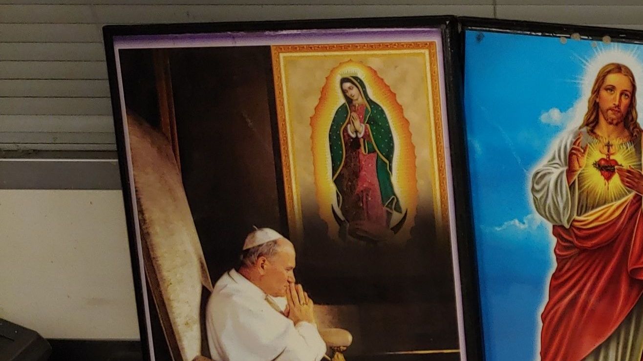Un cargamento encomendado a la virgen de Guadalupe, San Judas Tadeo, Sagrado Corazón de Jesús, San Juan Pablo II y hasta Pancho Villa.