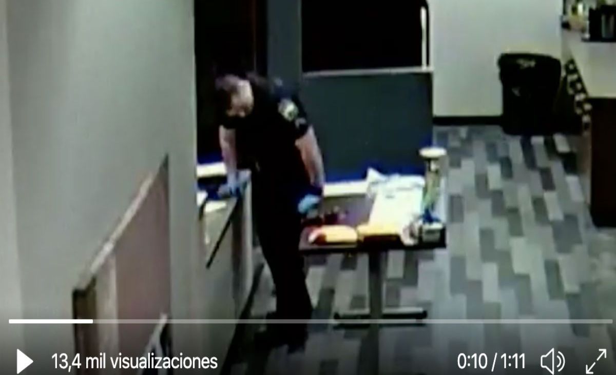En las escenas se aprecia cómo a pesar de que el oficial de la policía de Bartlesville usa guantes protectores cuando estaba empacando evidencia de drogas con fentanilo, lentamente comenzó a colapsar.