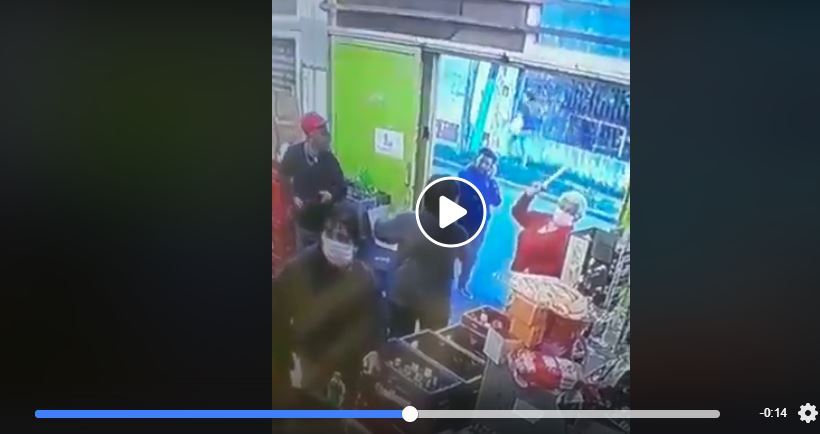 La cámara de seguridad de dicho establecimiento grabó el momento exacto en el que estas dos ancianas, que hacían fila para pagar, algo sucedió que, de la nada, se enfrascaron en una fuerte discusión que terminó en un intercambio de bastonazos.