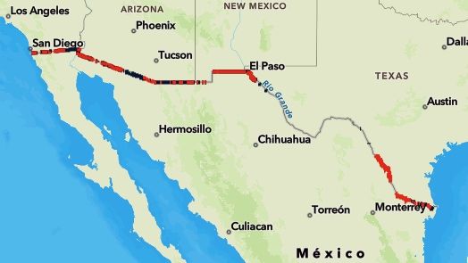 En el video de apertura de la página del muro fronterizo se observan a los trabajadores que con maquinaria pesada levantan la estructura de acero de 30 pies de altura en los sectores de la frontera de San Diego y El Centro, en California, de Yuma y Tucson, en Arizona, y de El Paso, en Texas.