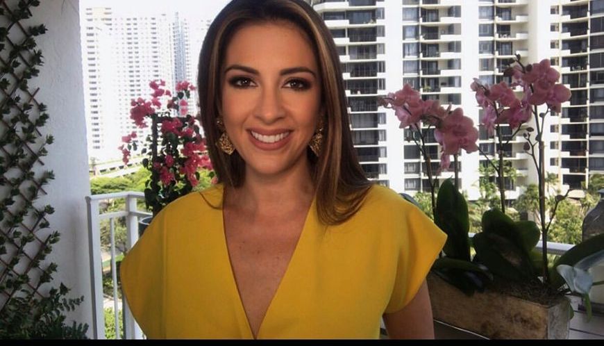 Así, con dos luces de jardín que la iluminan, una banqueta alta de sus muebles del balcón y varias cajas de regalo encima en donde apoya su computadora portátil, la cual le sirve de cámara para comunicarse y salir cada día en el show de las mañanas de Univision, dando alguna de las noticias más importantes o presentando aquellas entrevistas que realiza durante el día.