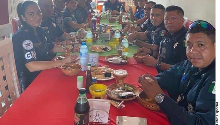 Desde la noche del martes, circulan en redes varias fotografías en las que se observa a siete guardias departiendo en un restaurante de mariscos con varios civiles, entre ellos supuestos integrantes de la familia Valencia, como Jonathan Valencia.