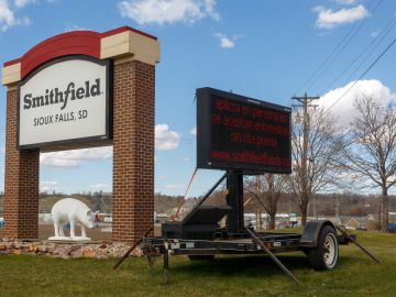 Un letrero en la planta de procesamiento de carne de Smithfield Foods en Sioux Falls, Dakota del Sur. Crédito: Getty Images