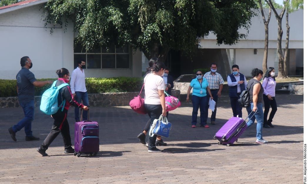Las primeras en descender de un camión de transporte de personal fueron cinco enfermeras que trabajan en el Centro Médico Nacional de la Raza y el Hospital General de Zona número 27 de Tlatelolco.