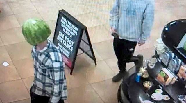 Roban una tienda cubriéndose la cara con una sandía