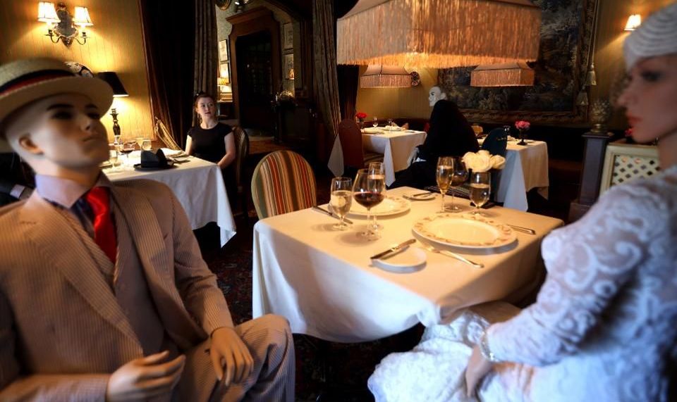Maniquíes en restaurantes para rellenar el espacio por el distanciamiento social. Crédito: Getty Images