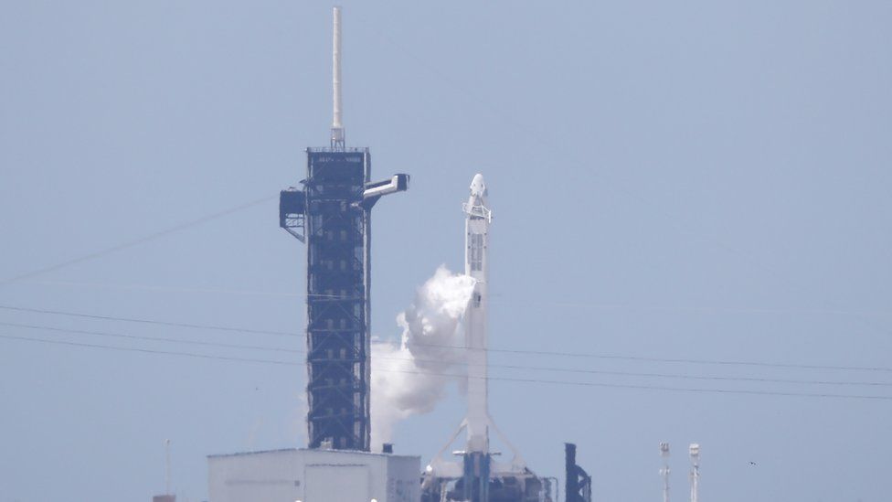 La cápsula Crew Dragon, sobre el cohete Falcon 9, despegó desde el mismo lugar utilizado para la misión a la Luna en 1969.