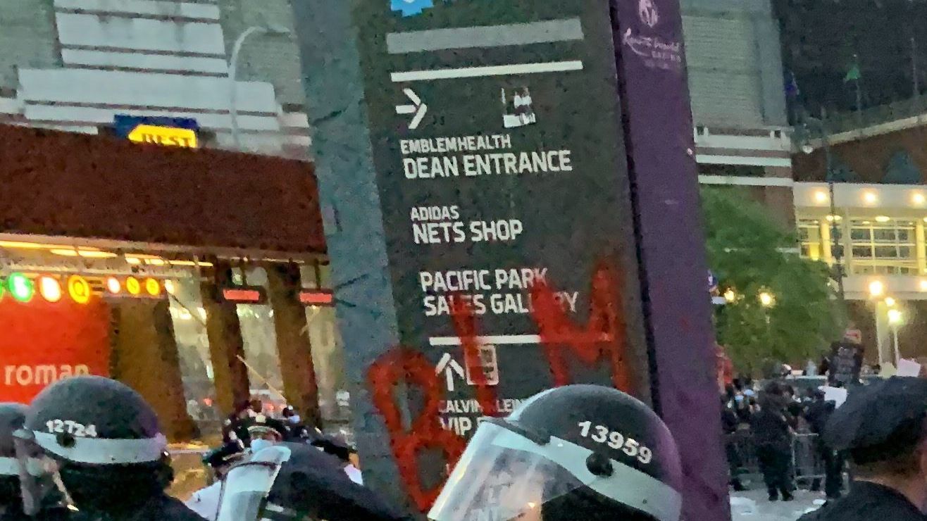 En NYC, dos vehículos de la policía han sido destrozados y se calculan casi 300 detenidos desde el jueves, según NBC News.