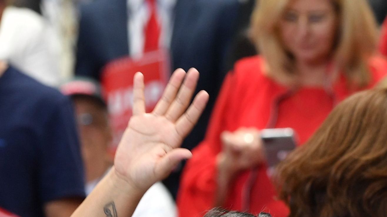 Latinos apoyando a Trump en un evento. Crédito: NICHOLAS KAMM | AFP / Getty Images