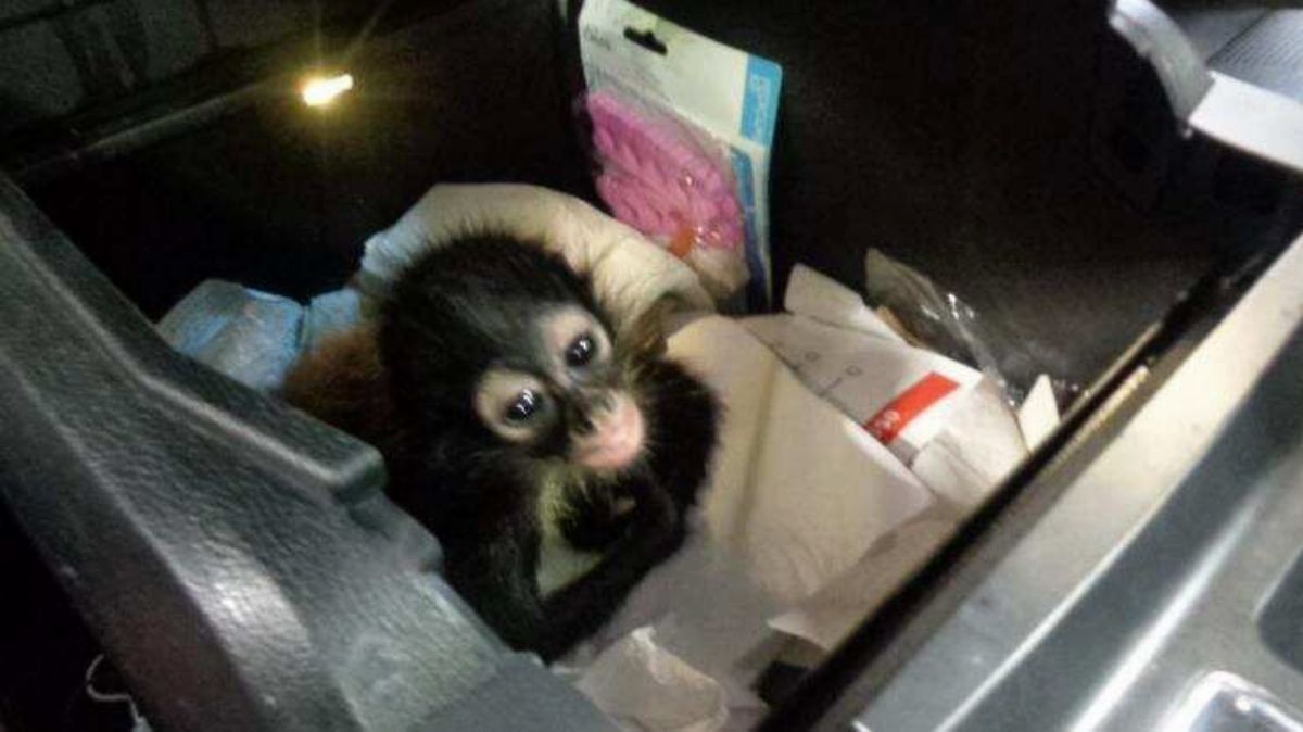 El mono araña había sido escondido en la consola central de una camioneta que cruzaba de México a EE.UU.