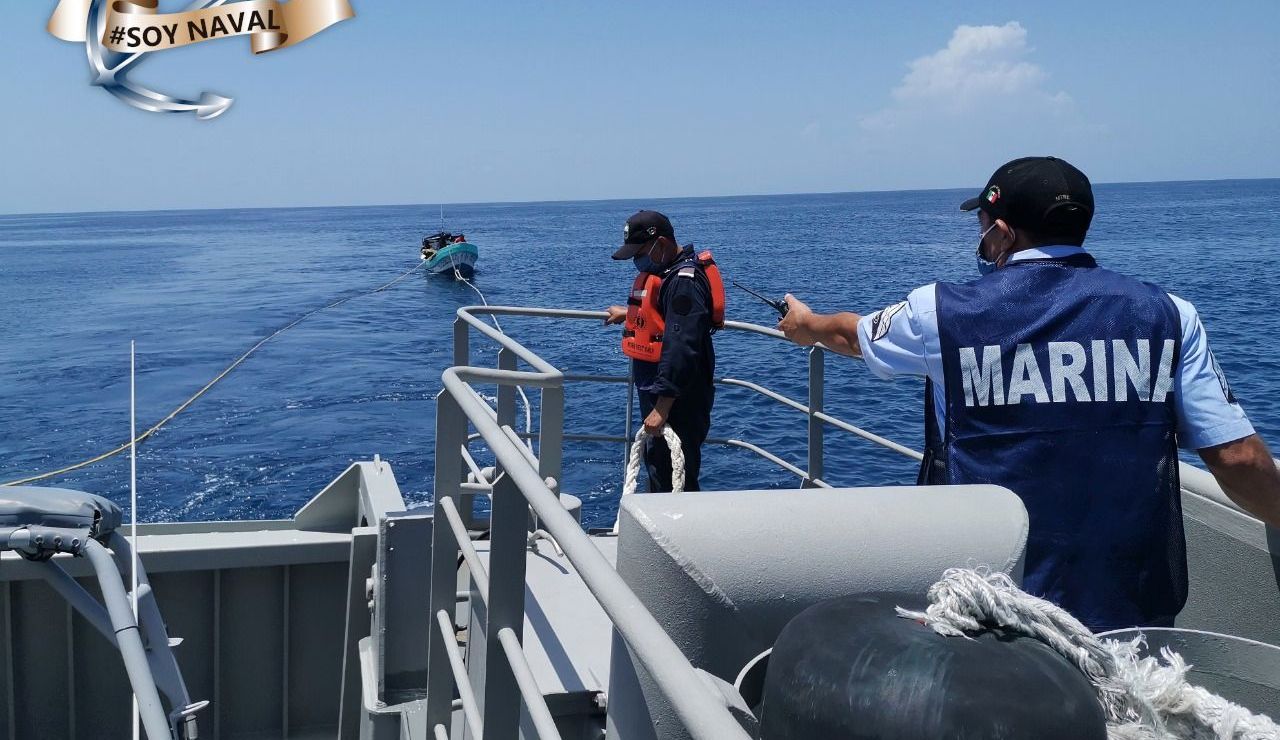 Derivado de lo anterior, se ordenó el zarpe inmediato de una embarcación tipo Defender de la Estación Naval de Búsqueda, Rescate y Vigilancia Marítima (ENSAR) de Isla Mujeres, la cual localizó a citada embarcación con todos sus tripulantes a bordo, para posteriormente remolcarla hacia el muelle del mando naval.