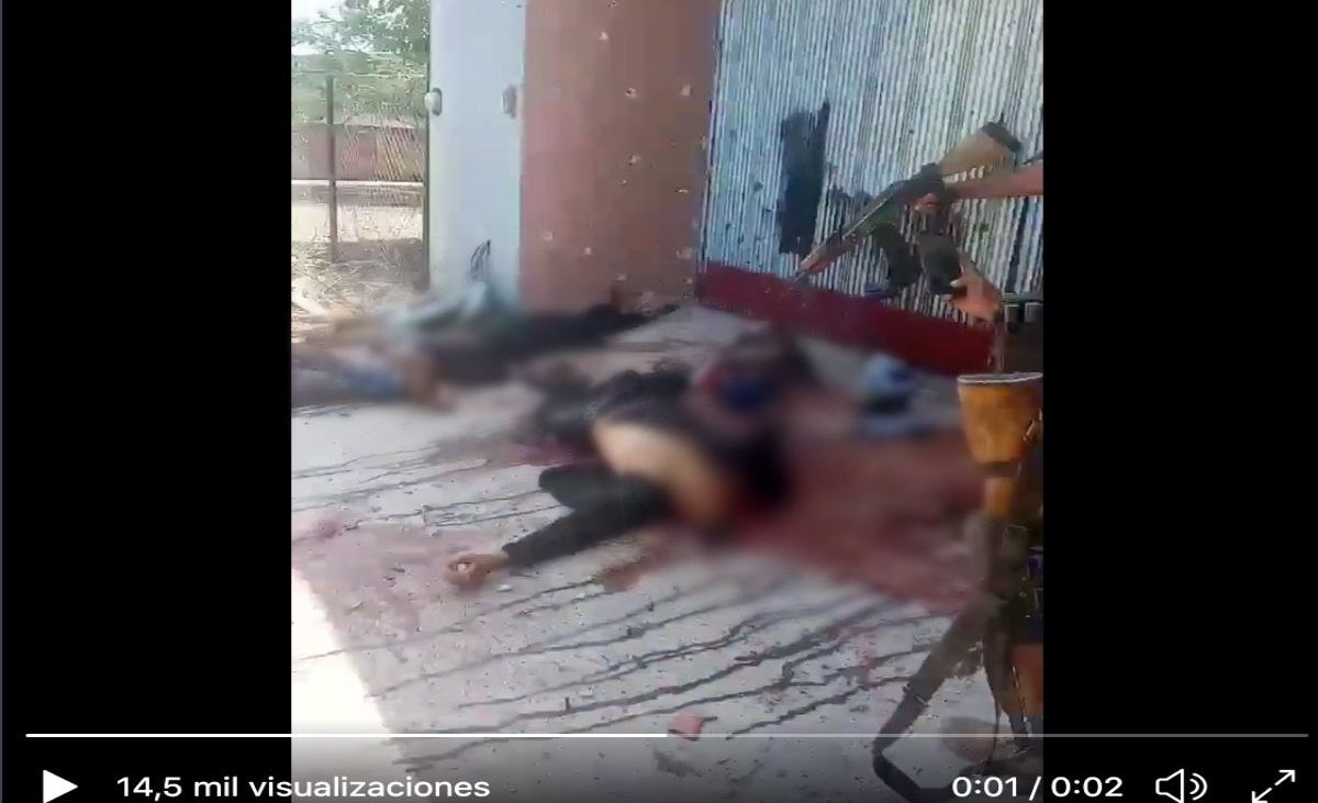 En las breves escenas que aparecen en redes sociales se aprecian los cuerpos de al menos tres personas y junto a ellos armas de grueso calibre. Al parecer la grabación fue realizada por los asesinos pues también están armados a la hora de hacer el clip.