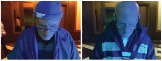 El sospechoso fue captado por la cámara usando una máscara protésica, chaqueta azul, gorra oscura, jeans azules y gafas de sol en el MGM Grand el 23 de mayo de 2019, donde retiró $30 mil dólares durante 15 transacciones diferentes en un período de 30 minutos.