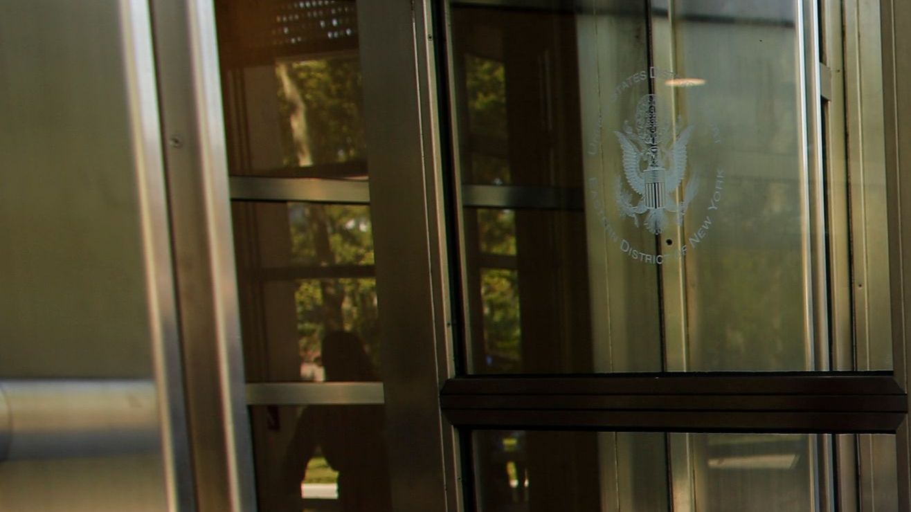 Emma Coronel con sus hijas en una de las visitas a la Corte de Brooklyn.