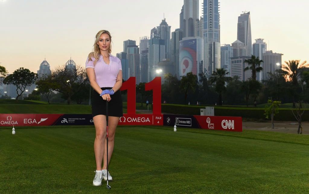Paige Spiranac durante un torneo en Dubai. Crédito: Tom Dulat | Getty Images