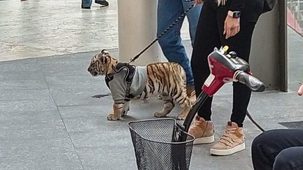 La presencia de una mujer llevando como mascota a un cachorro de tigre de Bengala en un centro comercial causó sorpresa e indignación para muchos en México este lunes.
