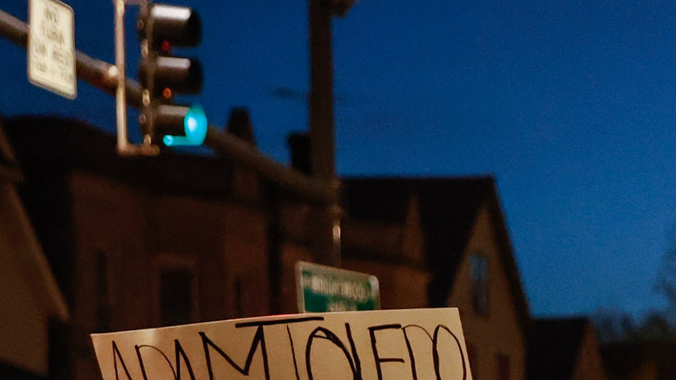 El domingo 18 de abril, cientos de personas marcharon por La Villita para honrar la vida de Adam. Muchos llevaban puestos camisetas blancas, levantando carteles con su cara redonda. Los organizadores repartieron flores y los manifestantes las pusieron sobre la cerca de madera donde Adam fue asesinado. La cerca lleva un mural de la silueta de Adam con alas de ángel. Amigos y familiares grabaron mensajes en el mural. “Te extrañamos”, dice uno.