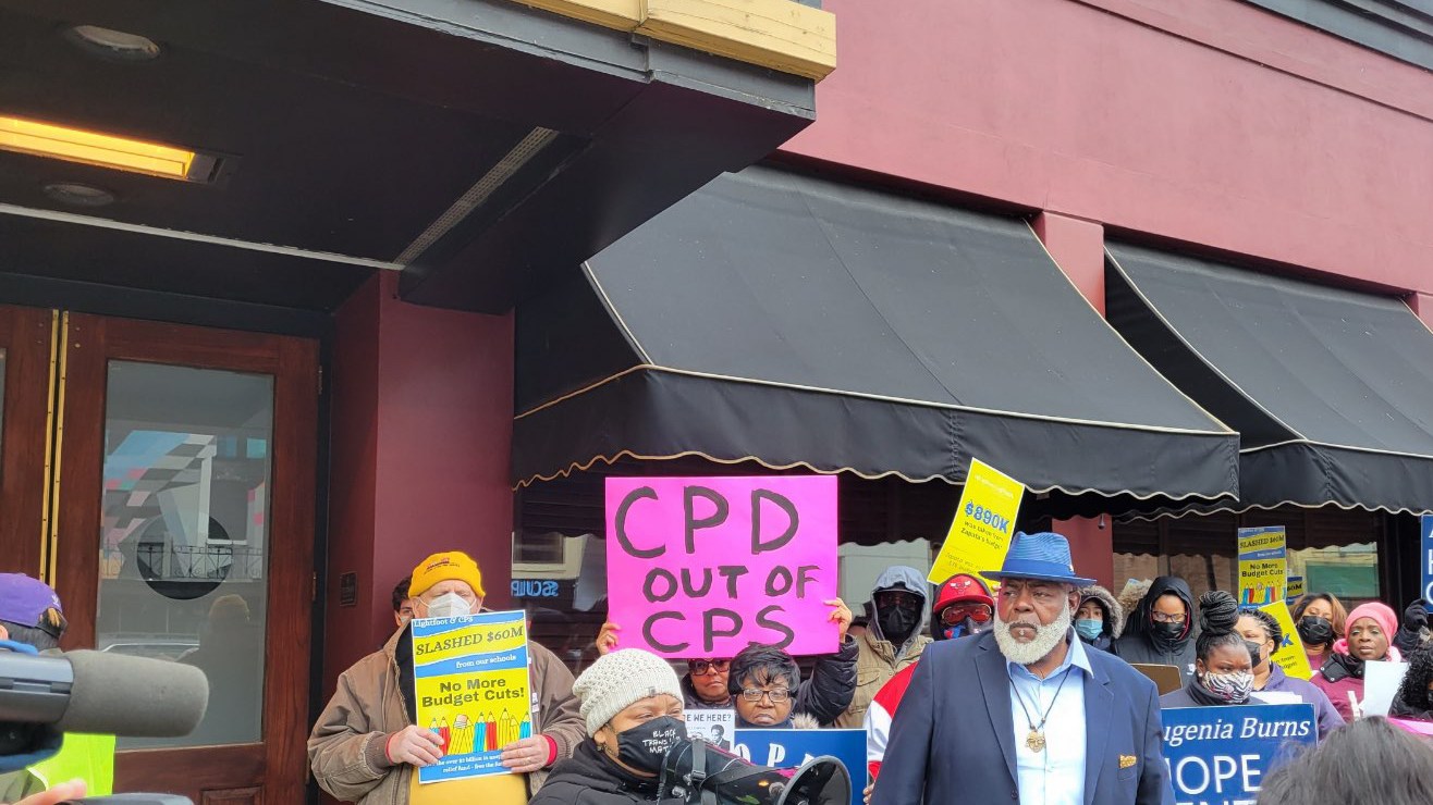 Manifestantes dijeron que las escuelas podrían enfrentar una disminución millonaria en sus presupuestos mientras que CPS cuenta con millones de dólares de ayuda federal aún sin usar.
