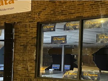 Los oficiales respondieron a la cuadra 2100 norte de la avenida Milwaukee alrededor de las 12:45 am del viernes, luego de informes de que vándalos rompieron una puerta y varias ventanas de vidrio de la sede de campaña temporal de La Spata.
