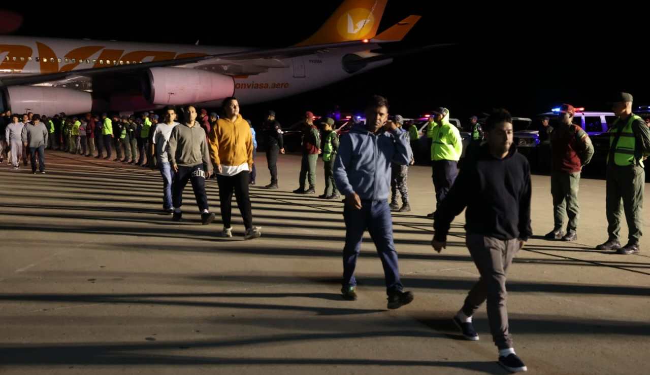 Venezolanos deportados de Estados Unidos bajan de un avión a su llegada a Venezuela. Crédito: EFE
