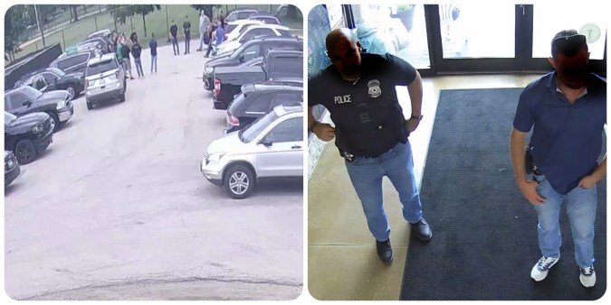 Imágenes sacadas de las cámaras de seguridad del museo muestran a un grupo de agentes cerca de los vehículos estacionados en el exterior.