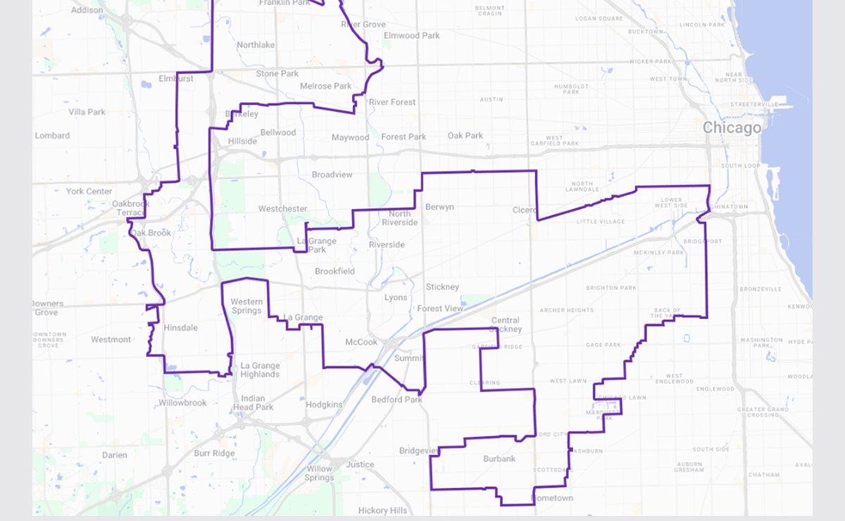Mapa del Cuarto Distrito Congresional de Illinois para la elección de 2026. Crédito: Google Maps