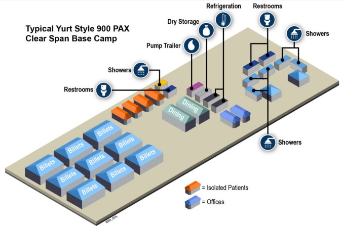 Un ejemplo de lo que podría ser un "campamento base" para albergar a migrantes en Chicago durante el invierno. (Cortesía Ciudad de Chicago) Crédito: Cortesía